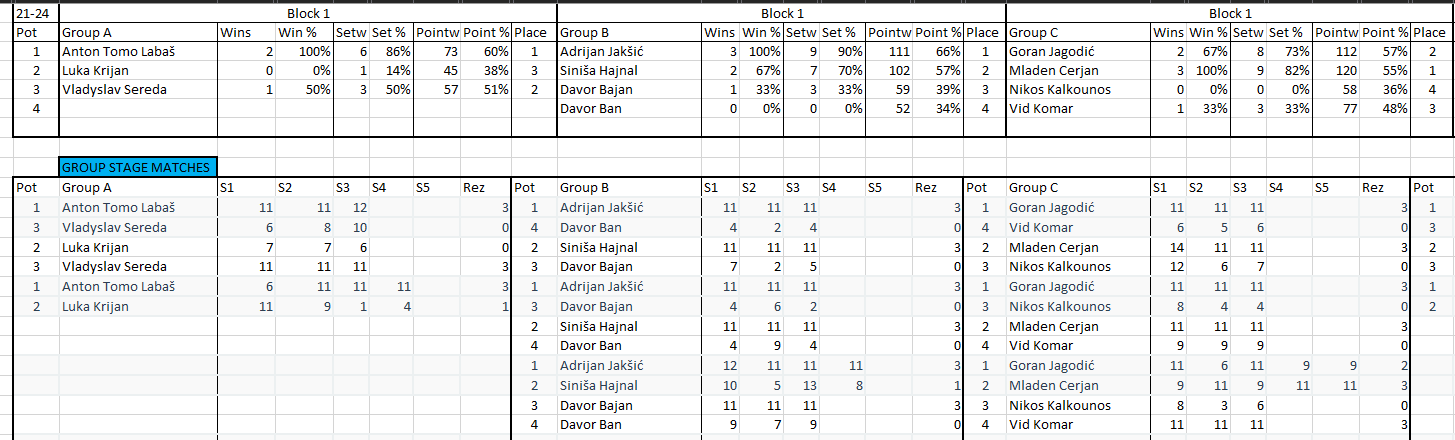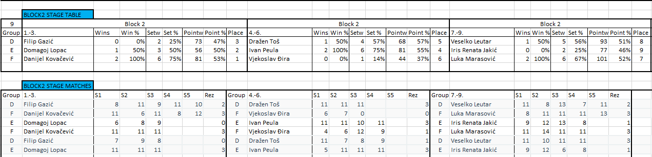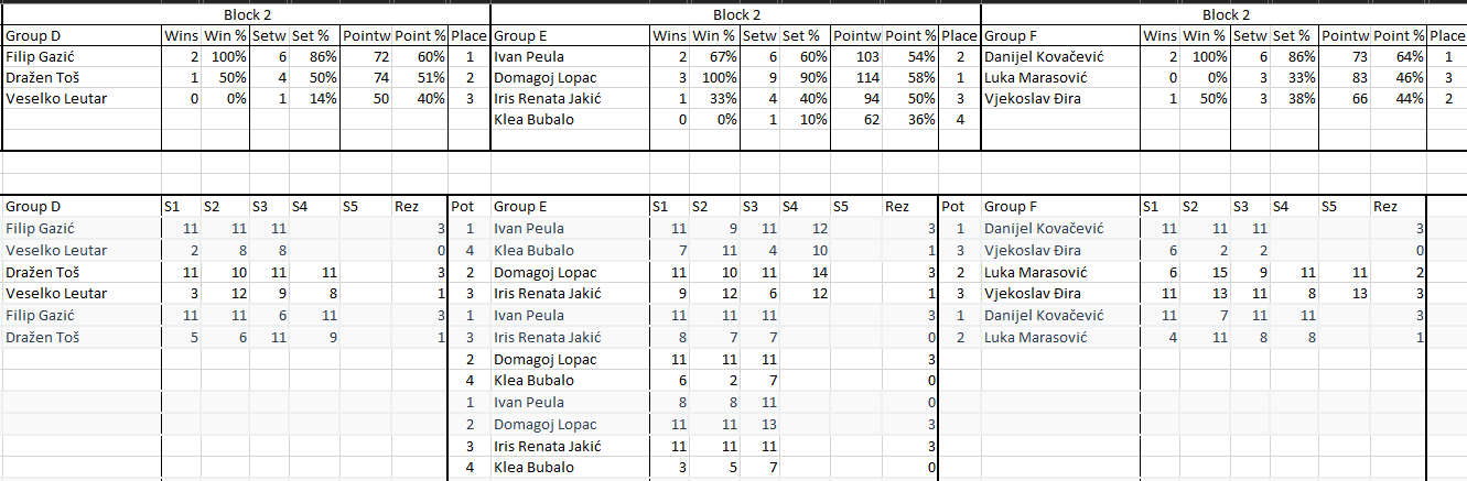 Pobjednik turnira je onaj koji pobjedi sve protivnike koji su bili prvi u svojim grupama. Igrat će se na 3 dobivena seta do 11 s lopticama koje će pripremiti organizator.