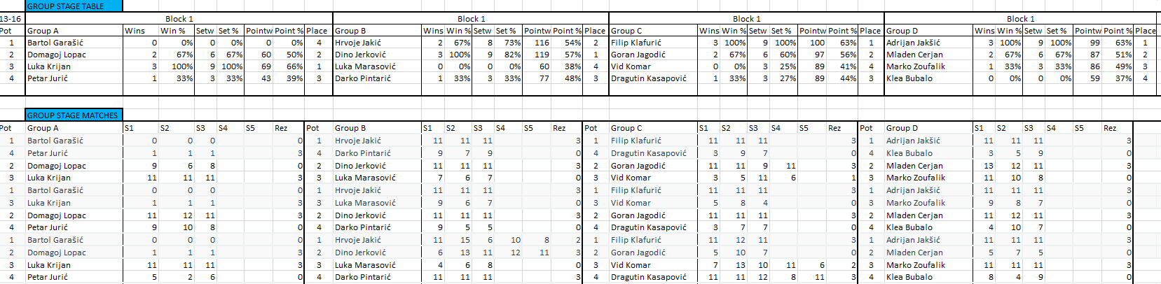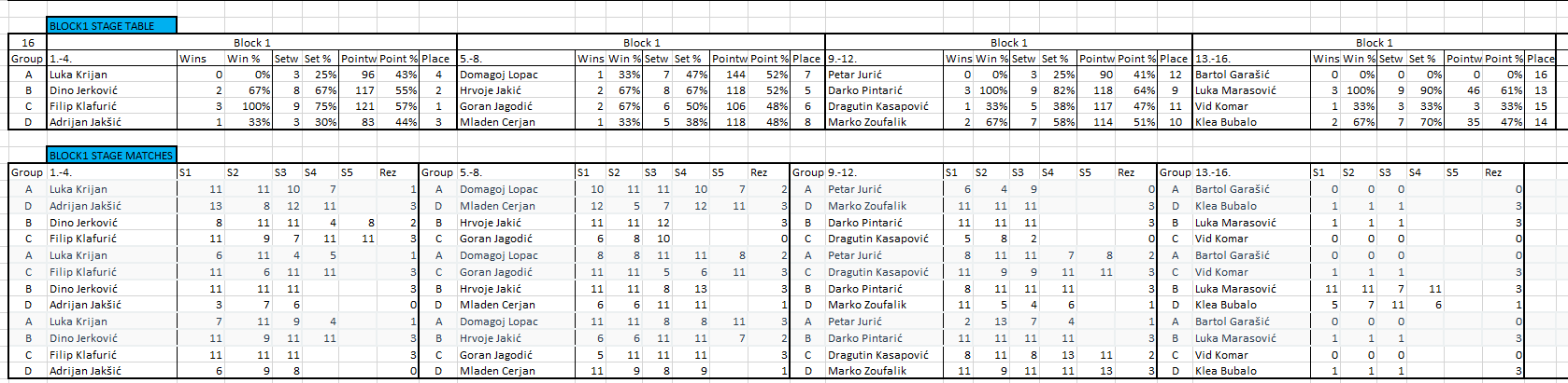 Pobjednik turnira je onaj koji pobjedi sve protivnike koji su bili prvi u svojim grupama. Igrat će se na 3 dobivena seta do 11 s lopticama koje će pripremiti organizator.