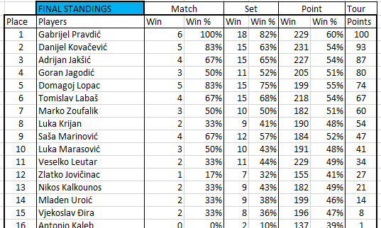 - prvoplasirani ima pravo na 3 sata besplatnog termina u dvorani )