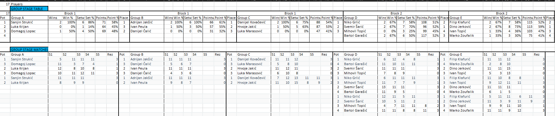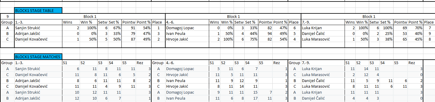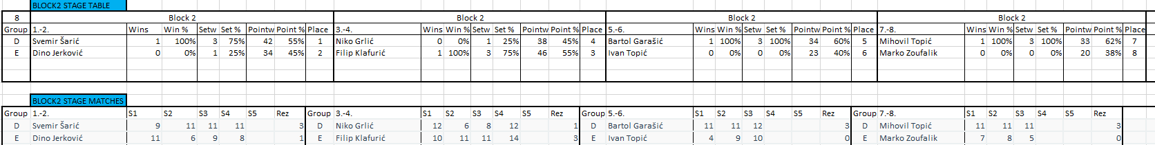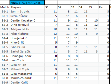 Pobjednik turnira je onaj koji pobjedi sve protivnike koji su bili prvi u svojim grupama. Igrat će se na 3 dobivena seta do 11 s lopticama koje će pripremiti organizator.