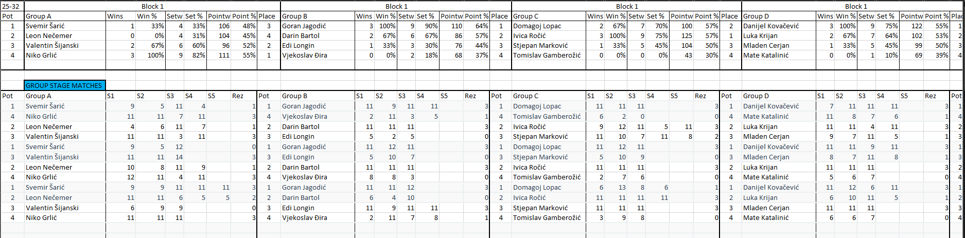 popis prijavljenih igrača: