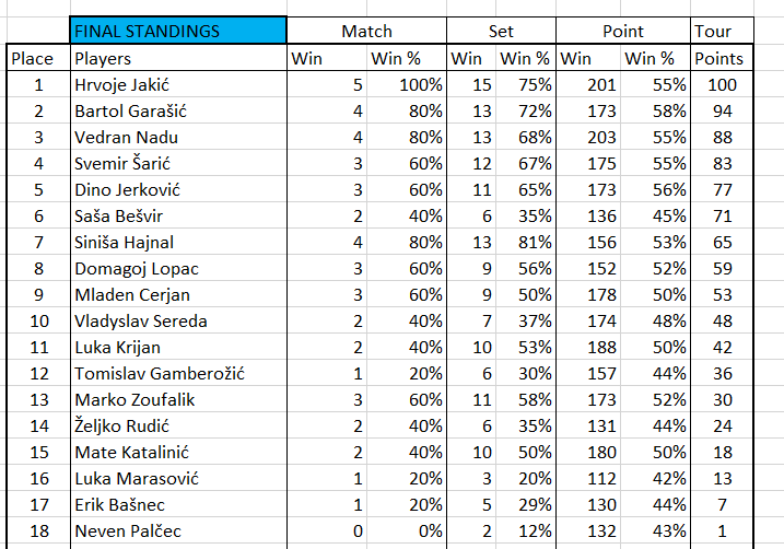 - prvoplasirani ima pravo na 3 sata besplatnog termina u dvorani )